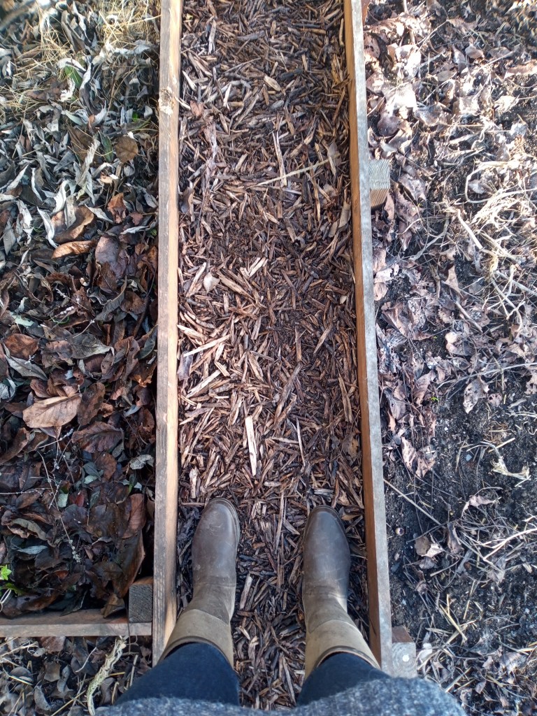 En verder is het vooral winter buiten, en koud en nat en grijs en liggen er wat klusjes zoals de kas opruimen en waar het nog kan: mulchen, mulchen, mulchen…