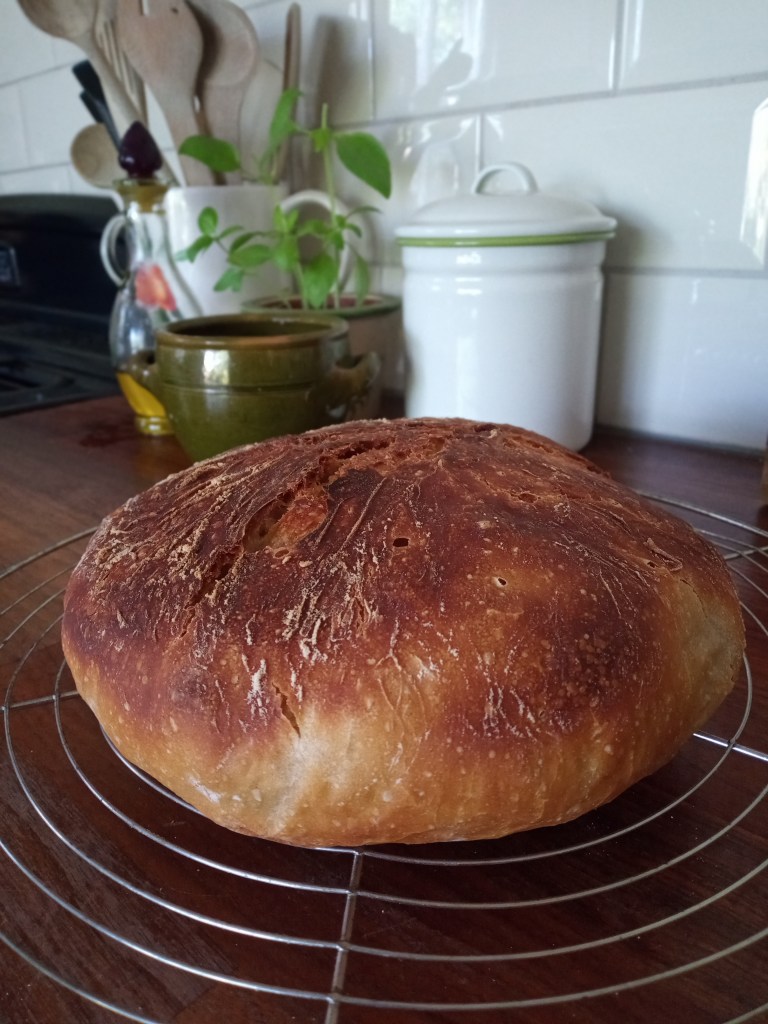 Toch even een paar dingen over juni. In juni heb ik meiraapjes geoogst, de laatste rabarber geplukt en er vlaai van gemaakt (veel werk, maar zoooo lekker!), alweer opnieuw ontdekt dat het zo fijn is om naar het bos te gaan, alweer opnieuw ontdekt dat hardlopen goed is voor de fysieke en mentale gezondheid (misschien toch een post-it op de koelkast hangen?), nog een heleboel meer en … een nieuwe desemstarter gemaakt en weer desembrood gebakken. Zo leuk om dat weer te doen. Ik vind het een fijn proces om mee bezig te zijn, stap voor stap het deeg voorbereiden en dan als beloning een heerlijk ruikend vers brood, waardoor het een beetje voelt als vakantie! Het zich continu herhalende proces vind ik heel rustgevend 🙂