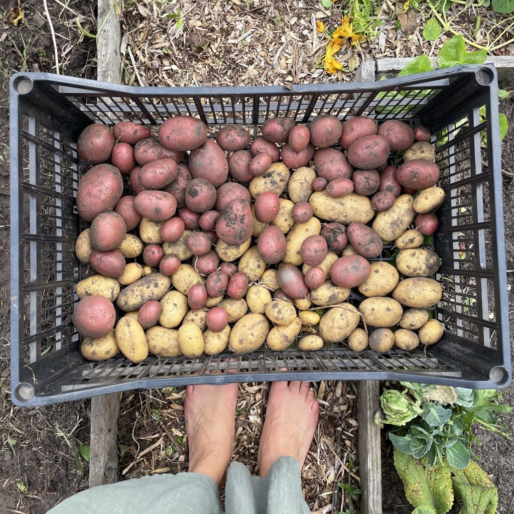 En er is genoeg te doen buiten. We hebben peren en appels geoogst. Maar ook de aardappels en nog flink wat tomaten uit de kas verwerkt tot saus.