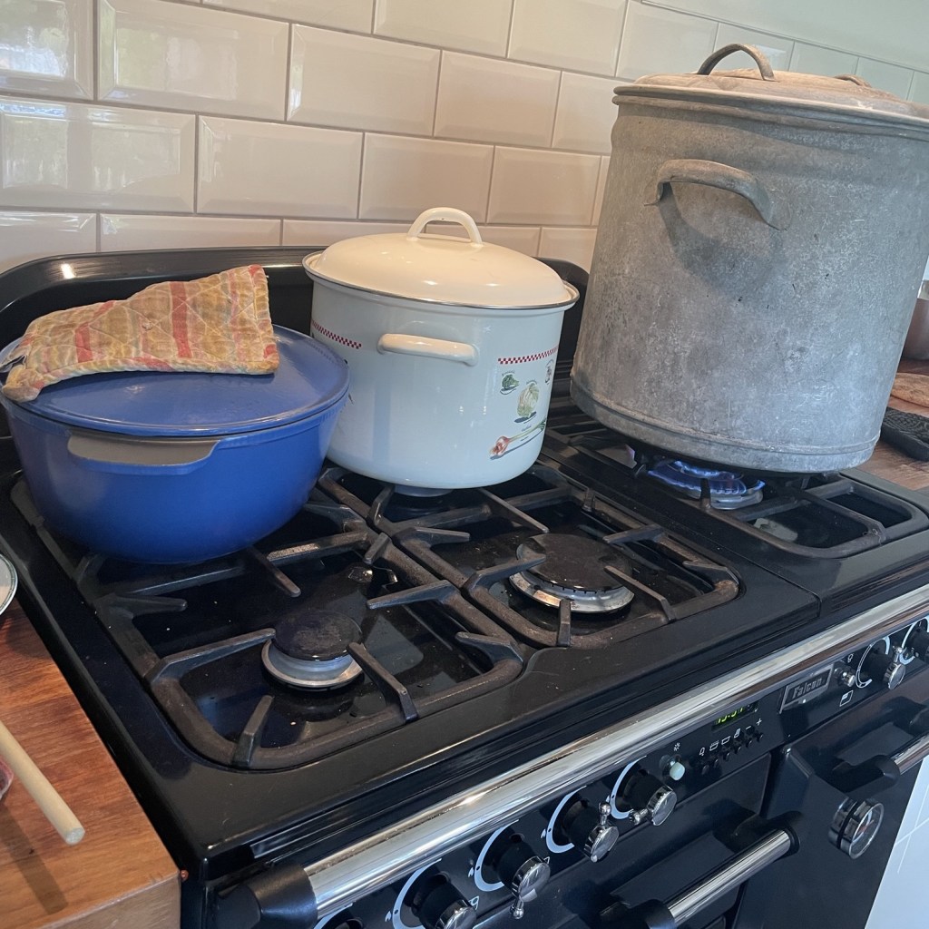 Ik heb een nieuwe poging gedaan tot wecken, nadat ik dit een paar jaar niet aandurfde. Het is zo veel gedoe als je het niet gewend bent, maar als je iets nooit doet wordt het ook nooit een gewoonte. Dus adem in adem uit, alles voorbereid en klaar gezet en na een dag zwoegen had ik 3,5 kilo tomaten veranderd in vier grote potten saus en een enorme chaos in de keuken 😉 alles is een proces, toch?
